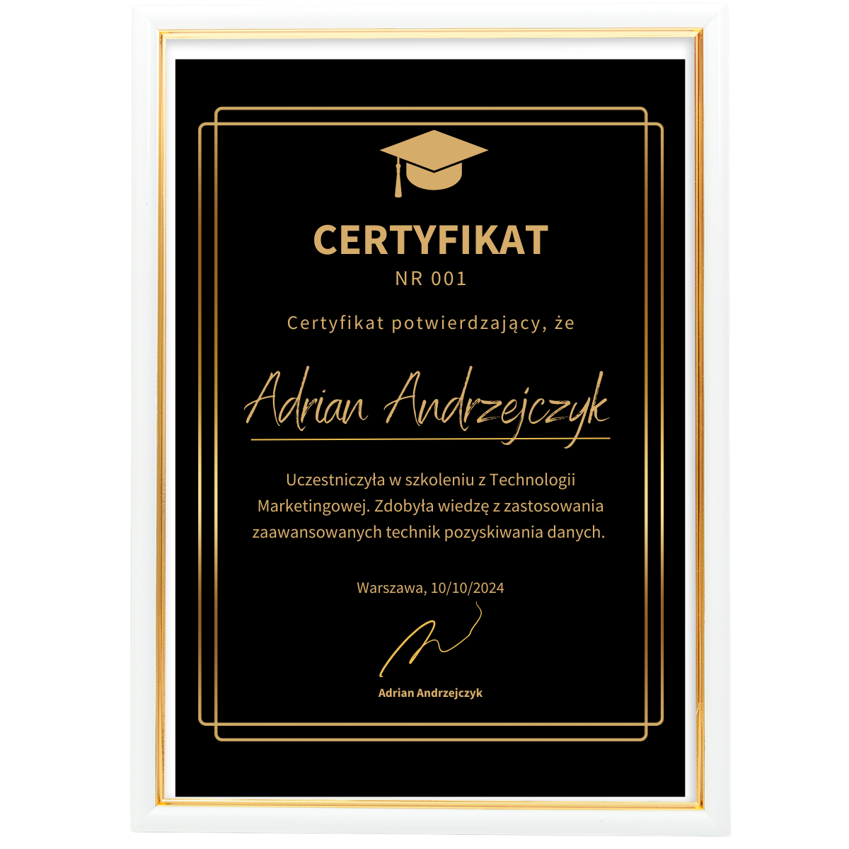 Każdy uczestnik warsztatu otrzyma imienny certyfikat potwierdzający zdobytą wiedzę i umiejętności.