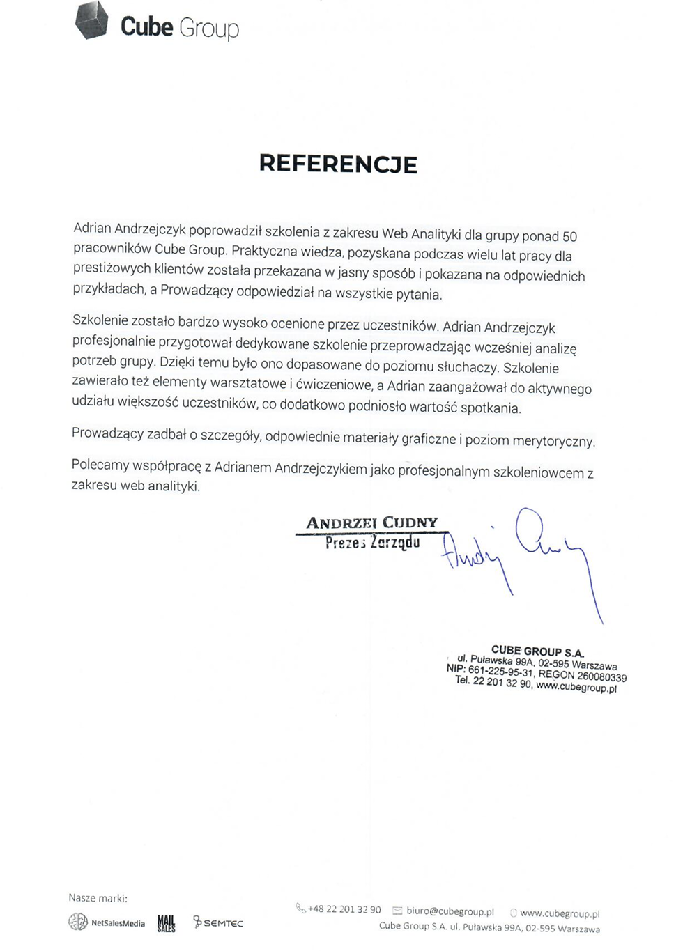 Ten kurs kieruję do wszystkich managerów i specjalistów marketingu. Po jego ukończeniu kursanci będą umieli samodzielnie wdrażać tagi i zdarzenia na potrzeby swoich działań - bez potrzeby angażowania traffic managerów, analityków czy programistów.